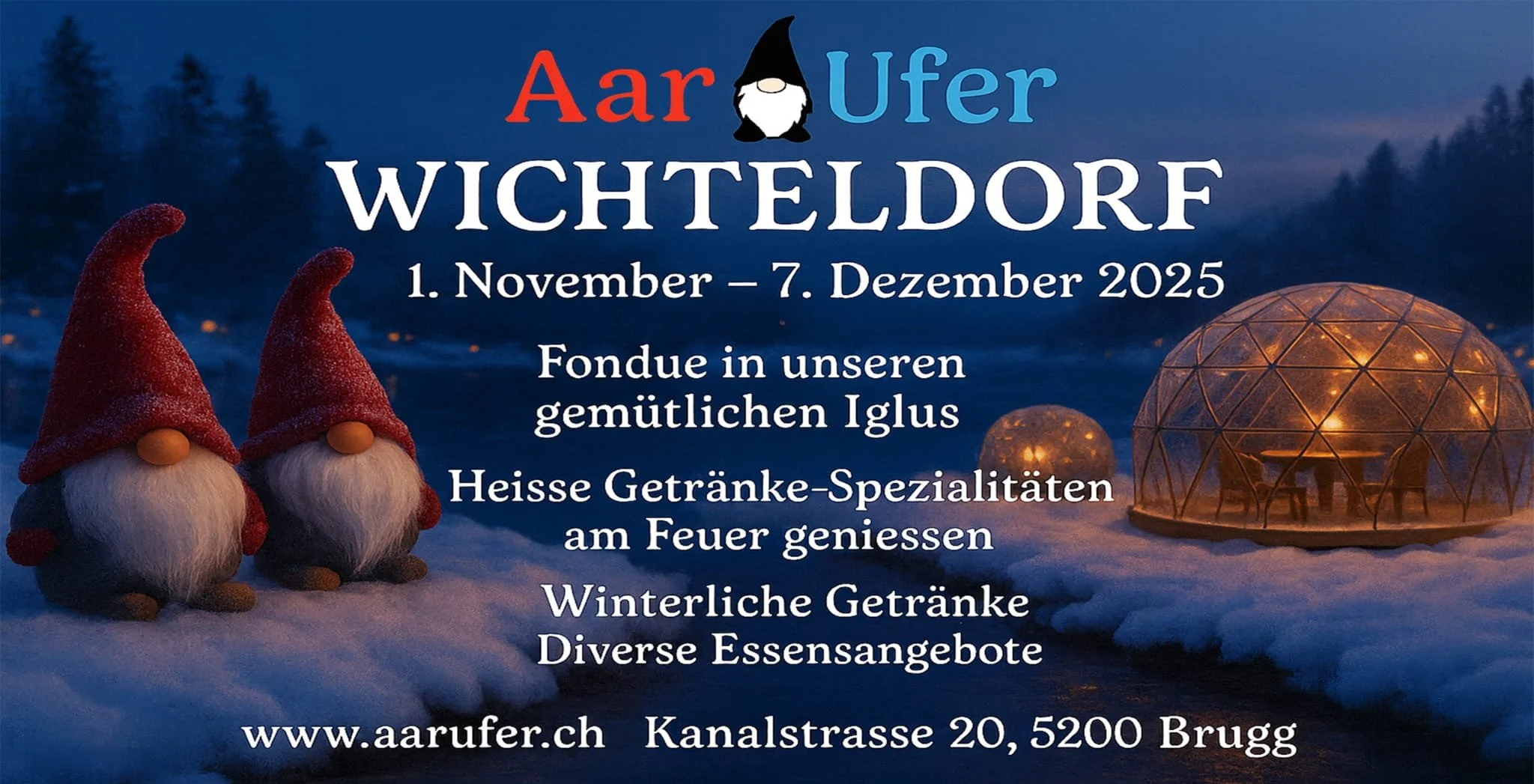 Nach der erfolgreichen Sommerbeiz erwacht das Aarufer nun auch im Winter zu neuem Leben....mit dem Wichteldorf direkt an der Aare. ❄️